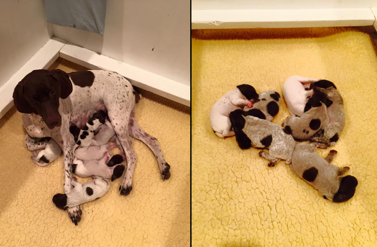 Dame: Yuma the Mom has a litter mate that is tearing up the field trial circuit. Braveheart Sporting Wood. Call name Woody owned by Lance Fargo. Her Dad we own- he has been a Field Champion and has held top ten spots in the NGSPCA in several categories through several years. Good hunting dogs and the BEST family pets ever. All our German Shorthair Pointers live calmly in our house.